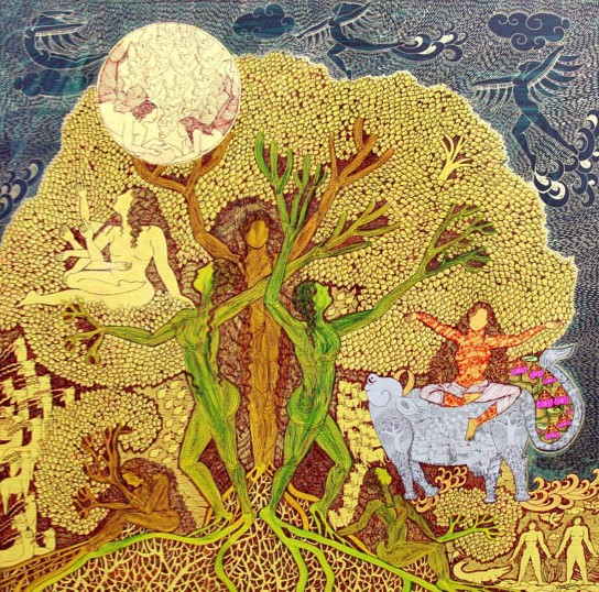 Mixed Media on Canvas with 24ct Gold & Silver Leaf