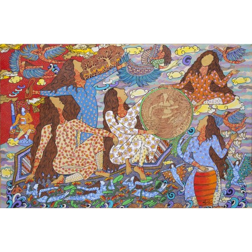 ACRYLIC AND INK ON CANVAS WITH 24CT GOLD AND SILVER LEAF