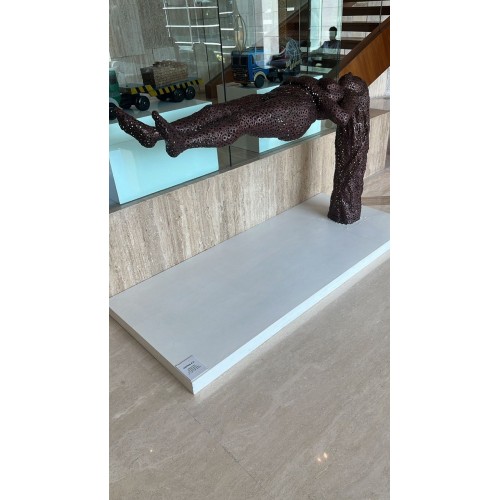 painted metal on wooden base