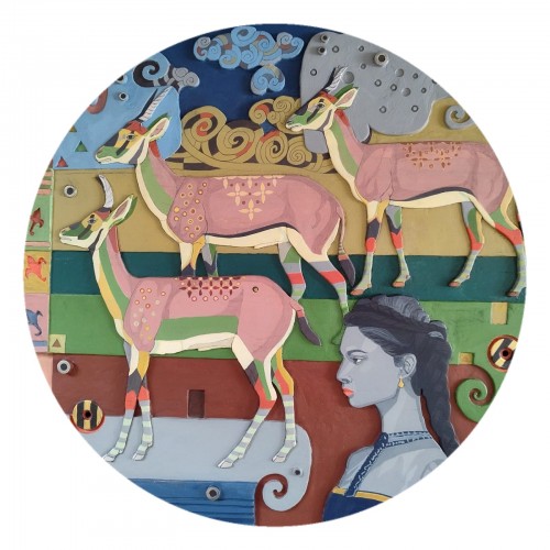 Iron and acrylic on teakwood
