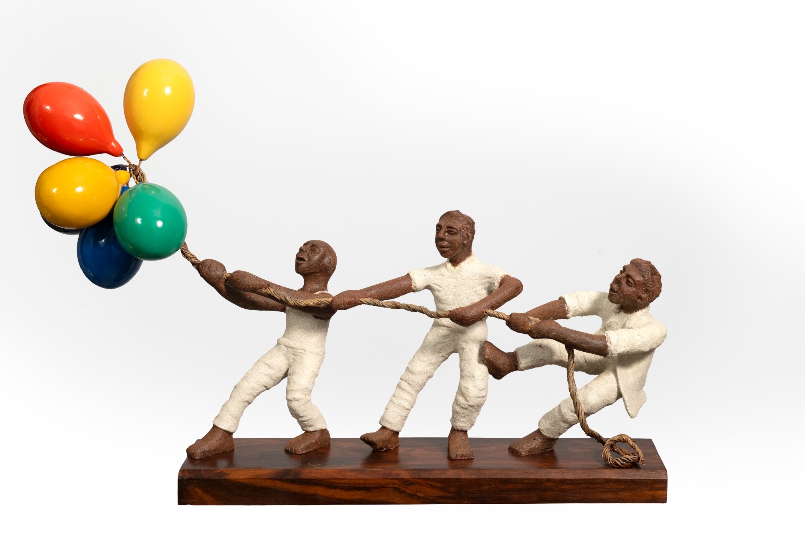 Fibreglass, metal wires on wood base