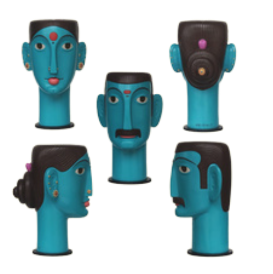 Kandi Narsimlu hailing from Telangana, obtained his Bachelors' in Fine Arts from JNT University, College of Fine Arts and Architecture in Hyderabad and Masters' in Fine Arts from JNA Hyderabad. Kandi's work is picturesque of villagescapes and the locals of the region. He encapsulates the traditions of these villagers in true essence by giving prominence to details in their attire, their demeanor and their lifestyle. His work, and human forms in particular have a unique folk style. He uses his work to portray the diminishing culture of the village folk and popularise the rich culture that rural parts of India harbors. His most popularly used medium is acrylic on canvas and his sculptures which he sculpts using fibre glass and some- times wood. He uses bright hues such as reds, ochres, blues, greens, etc. His strokes are long, bold, and well defined. It depicts an ethereal, rural, Telangana, where women hang keys to their mangalsutra and men wear silver amulets. They sport vermillion bindis that reflect deep-rooted Indian culture He has been felicitated by numerous awards for his work. He has a number of solo as well as group shows to his credit. He currently resides in Telangana and works from there.