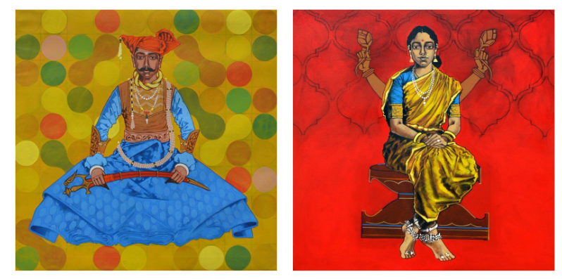 The present series of paintings mounted in the show seems to be largely based on the horse, the best of all beasts, depicted in various artistic traditions such as in Channapatna, which perhaps inspired him apart from the comic books and the archives of the studio photography which he witnessed at his father’s photo studio as he grew up. Thus, his canvases appear like the hand-painted props that were used in old school photo studios to serve as illusionary sceneries in two-dimension within the space, at times, they are an amalgamation of both appropriations of popular pictures and Indian miniature.